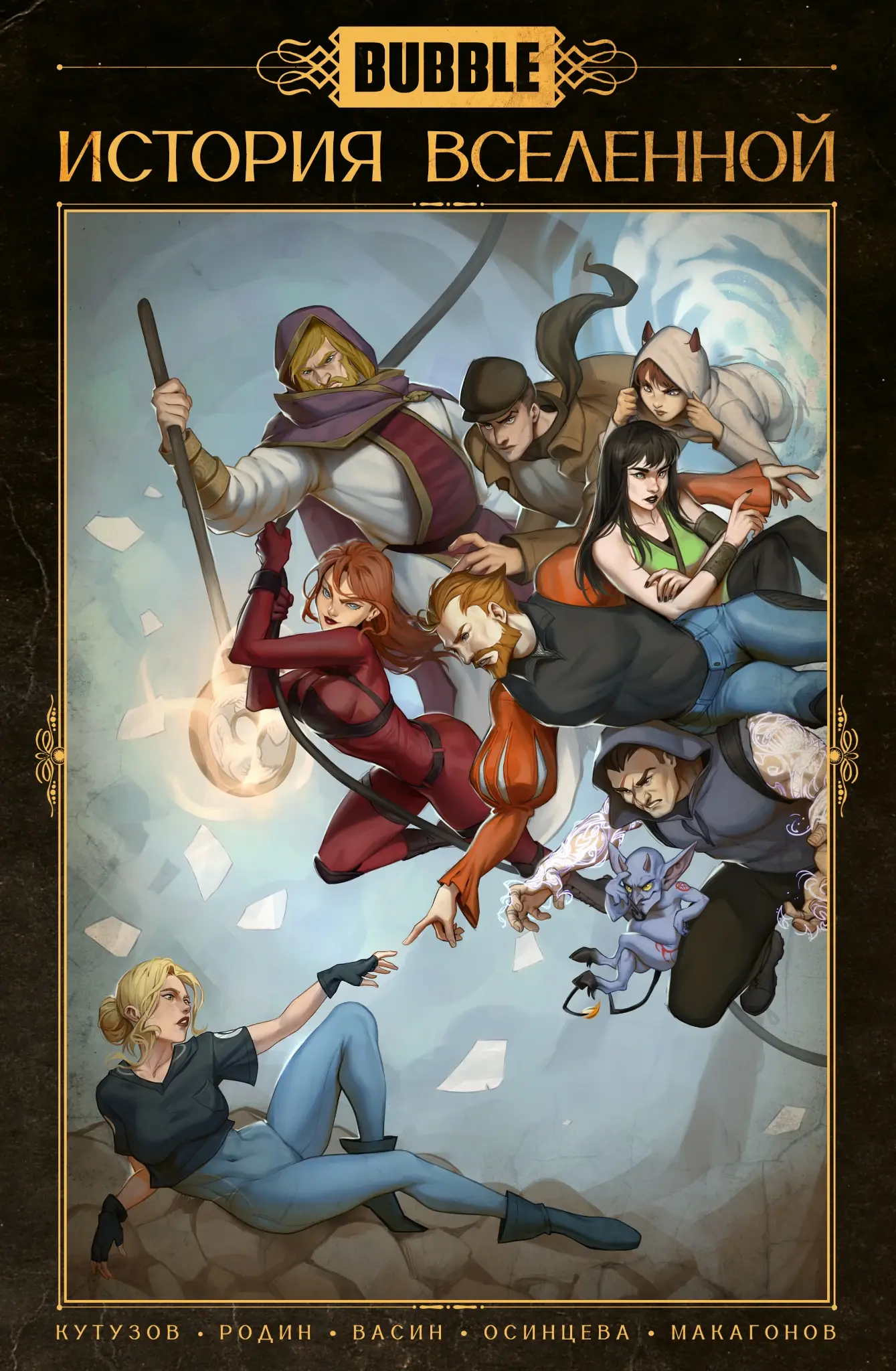 Вселенная комиксов BUBBLE существует уже больше двенадцати лет, и за это время в выдуманном мире чего только не происходило: герои сражались со злодеями, возрождались и гибли волшебные сущности и даже целые миры, тайные ордена плели заговоры, а искатели приключений оказывались в удивительных неведомых краях. Как можно было всё это уложить в книгу? Было непросто, но мы это сделали!